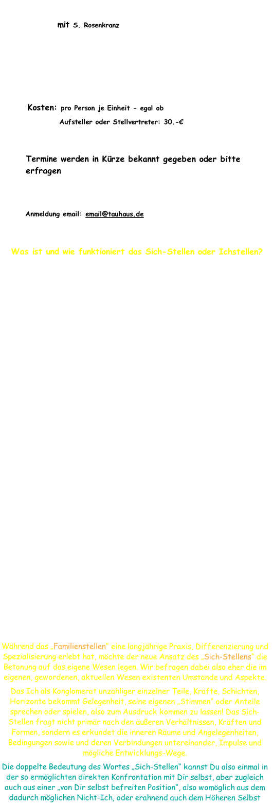 Eine Aufstellung ist auf ca. 50 Min. begrenzt, so dass mindestens 3 Aufstellungen pro Einheit statt finden können.
